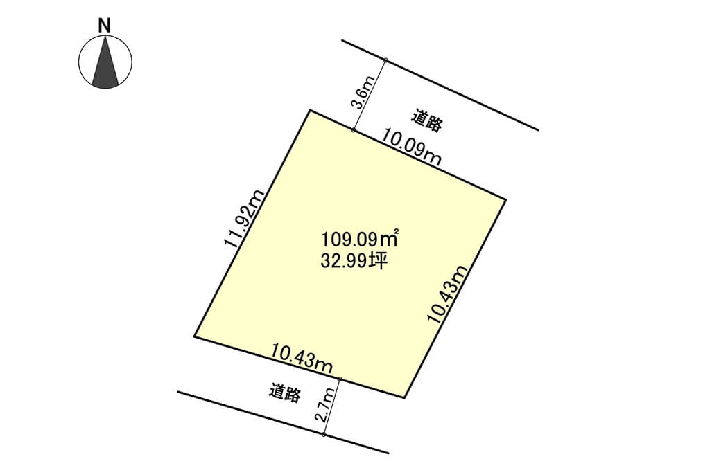 - 北側 広島市道幅員3.6m 接道10.09m